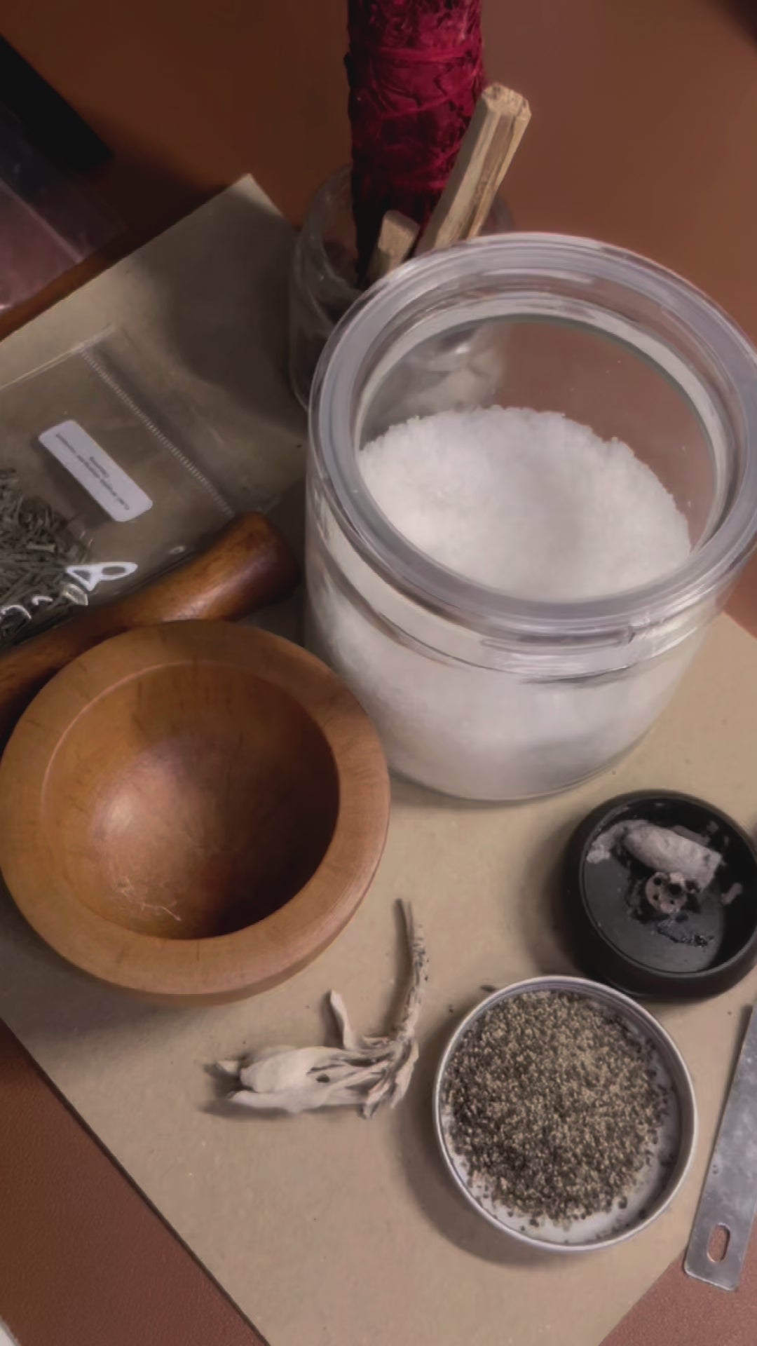 - Sprinkle Around Your Space: Place a small amount of Black Salt in the corners of your home, around doors, windows, or any area where protection is needed to cleanse and ward off negative energies.