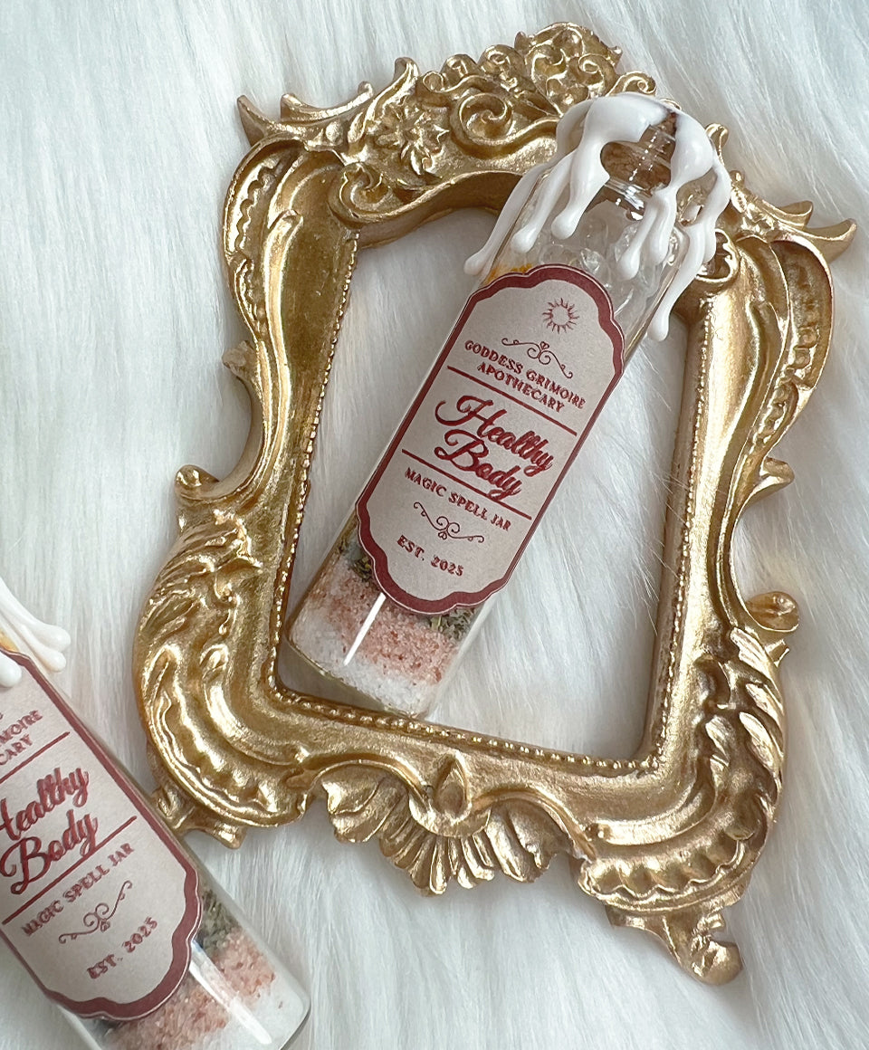Each "Healthy Body" Spell Jar is thoughtfully filled with carefully selected herbs, crystals, and sacred items, all chosen for their healing properties and positive influence on the body. Infused with intention and love, this jar helps to focus your mind on maintaining balance, nourishing your body, and embracing vitality.