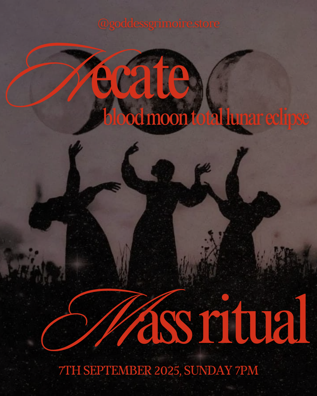 Step into the threshold with Hecate, the goddess of the crossroads, magic, and the unseen realms, during the rare and potent Blood Moon Total Lunar Eclipse. This sacred ceremony is designed to close karmic loops, cut away toxic cycles, and guide you with unwavering protection through the shadows into your next chapter.