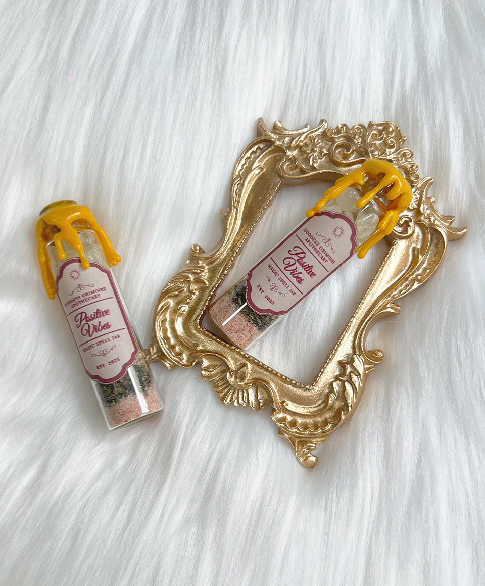 Place it in your home, office, or personal space to maintain an aura of light and positivity. Let the "Positive Vibes" Spell Jar work its magic, bringing you good energy, good thoughts, and a harmonious flow of joy into every aspect of your life.