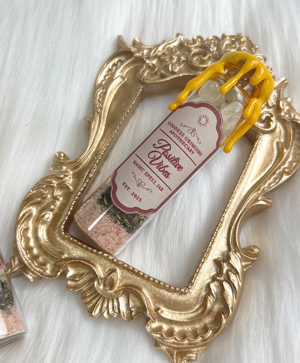 Whether you're looking to shift the energy in your home, boost your mood, or invite good fortune, the "Positive Vibes" Spell Jar serves as a powerful ally in creating an environment of positivity and peace. It helps cleanse negative energies, uplift your spirit, and create a warm, welcoming atmosphere wherever it's placed.