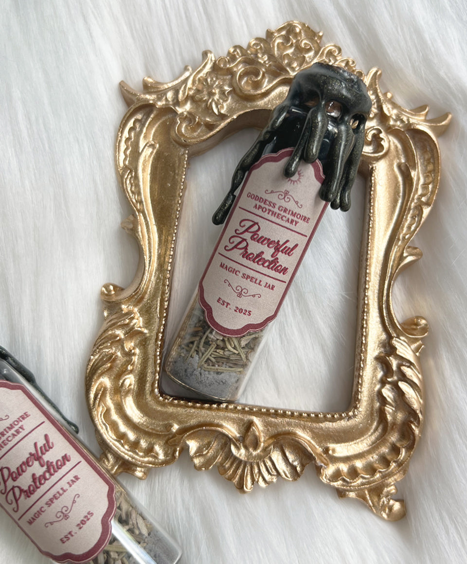 Whether you're seeking to protect your home, your personal energy, or loved ones, this spell jar serves as a powerful talisman to ward off negativity and shield you from unwanted forces. Harness the energy of transformation and protection with the "Powerful Protection" Spell Jar - a potent ally in your spiritual defence.