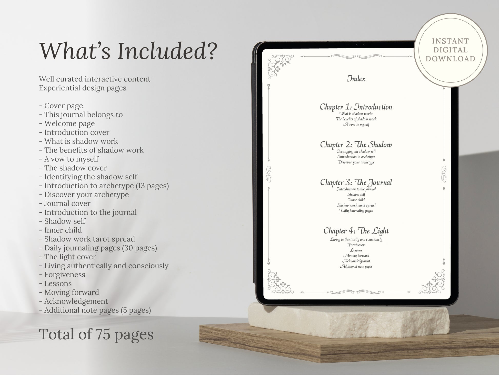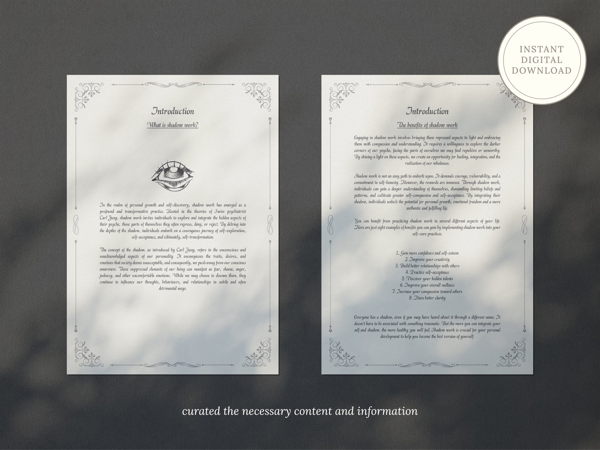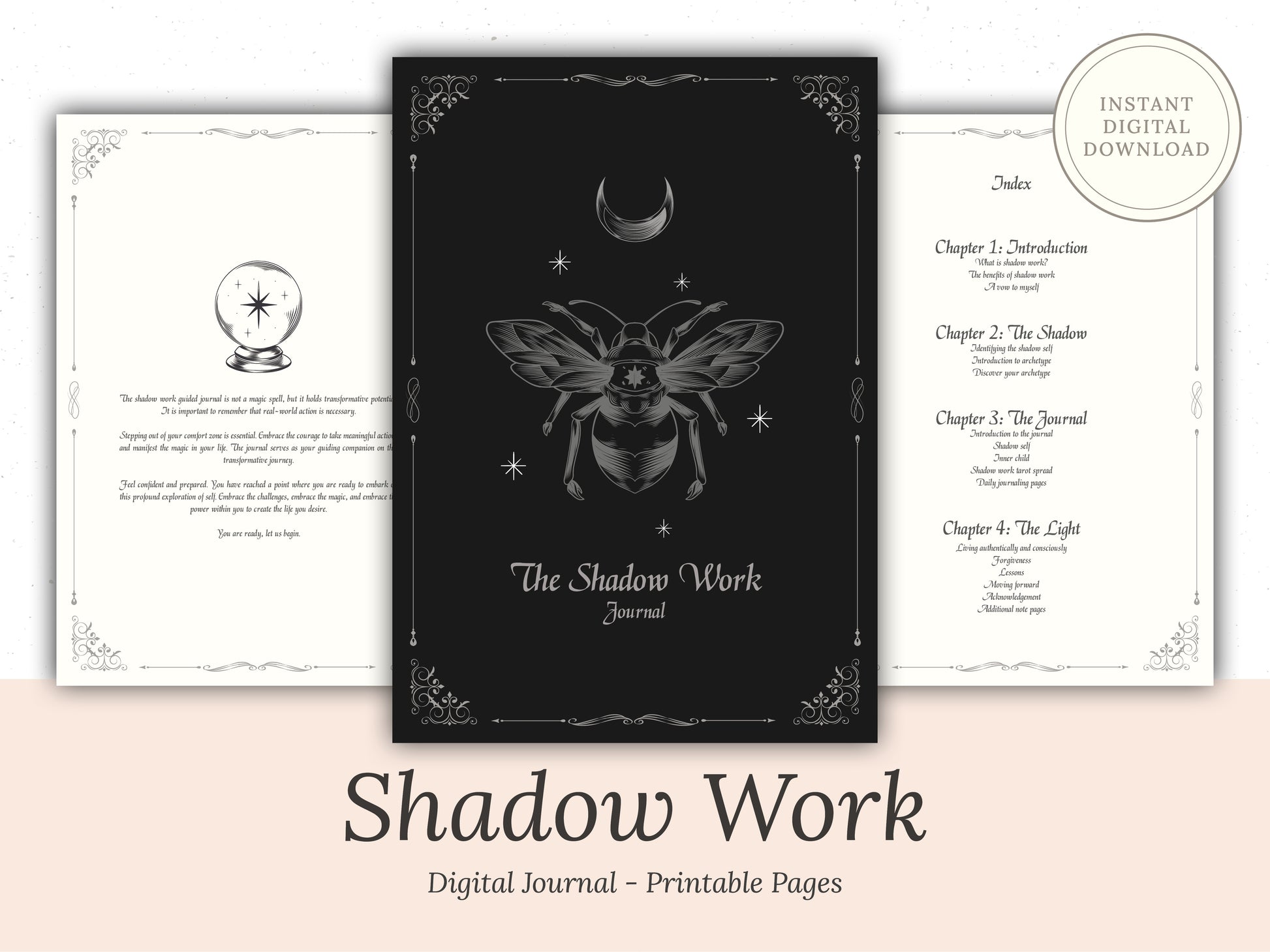 Introducing the Shadow Work Digital Journal – your personal companion on the journey of self-discovery and healing. This intuitive, interactive journal is designed to guide you through deep introspection, helping you confront and integrate your shadow self. With carefully crafted prompts, exercises, and reflective spaces, the Shadow Work Digital Journal offers a safe and supportive environment to explore your inner world, release limiting beliefs, and embrace personal growth. Whether you’re new to shadow work or experienced on your spiritual path, this journal empowers you to transform hidden aspects of yourself into sources of strength and wisdom.